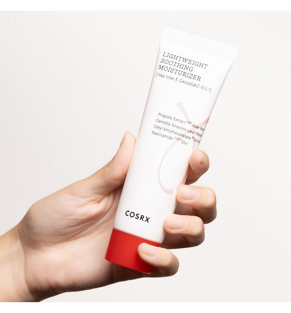 L'hydratant apaisant léger de COSRX pour peau acnéique hydrate et rétablit le pH de la peau. Il contient 71,2% d'Aloe Vera, Propolis et Thé vert pour apaiser et calmer les peaux irritées. Le complexe Centella AC-Rx réduit les gonflements, améliore la cicatrisation et les cicatrices d'acné. Avec de la Niacinamide et du Zinc pour réguler le sébum, ainsi que des AHA et BHA pour éliminer les cellules mortes, cette crème offre une hydratation rapide sans effet gras.